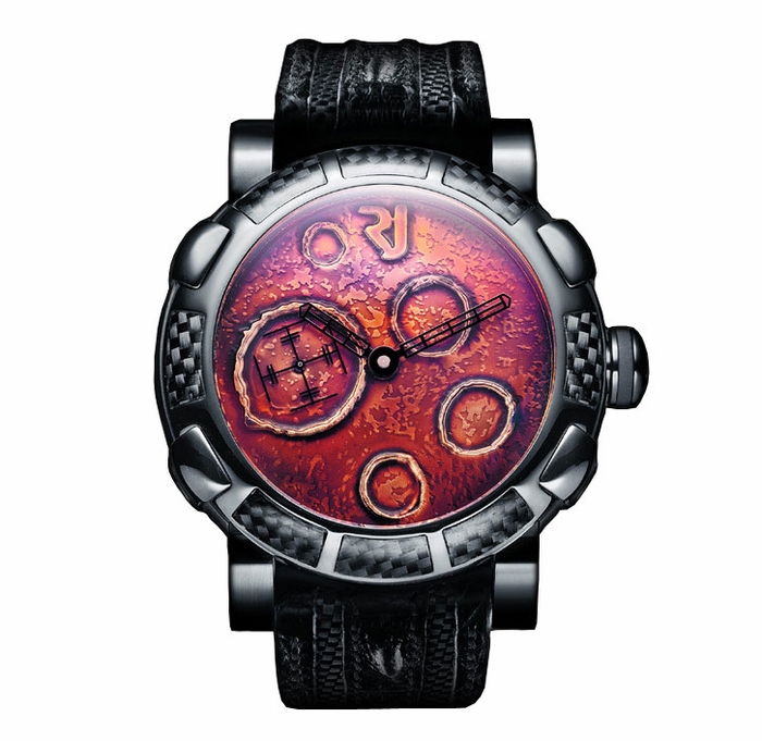 Go to Romain Jerome Moon Dust Black Mood Ochre Dial Black Crocodile Leather Mens Watch MOFBBBBB00
