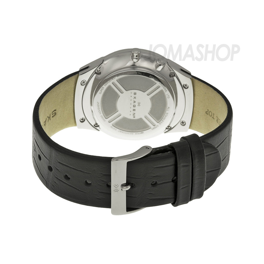 Go to Skagen Black Dial Stainless Steel Black Leather Mens Watch 983XLSLB