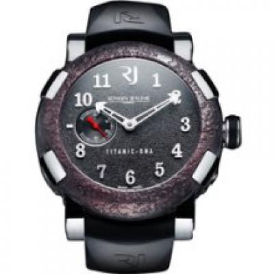 This Romain jerome watch from Titanic dna series features a precise automatic movement encased in stainless steel and black pvd case 46 mm diameter with scratch resistant sapphire crystal. In addional this Romain Jerome watch features, fixed, extreme rusted bezel. This watch rests comfortably on your wrist with its black rubber bracelet secured by deployment with push button clasp. Romain Jerome Titanic DNA Rusted Automatic Mens Watch RJRJTOXY311BB00BB.